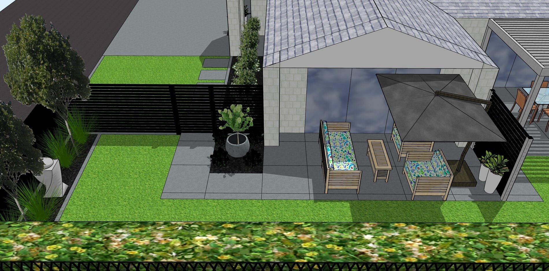 Starting with an onsite visit and discussion about how you'd like to use your outdoor living areas, we can design your outdoor space to fit your aesthetic and lifestyle. In this concept design you can see how the area can be laid out, you will get a feel for the materials used without being overwhelmed by detail. You can see how hardscape features have been placed in relation to each other. Ideal for a specific areas of your garden, eg. BBQ/patio/entertaining area.